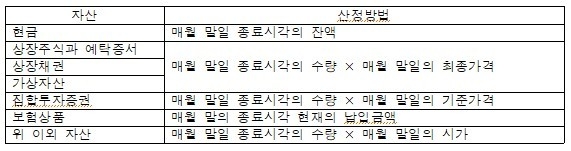계좌 잔액은 해외금융계좌에 보유한 자산별로 아래의 구분에 따라 산정한 금액을 해당 표시통화의 환율(외국환거래법에 따른 일변 기준환율 또는 재정환율)로 각각 환산한 후 계산한다.