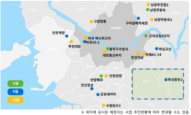 올해 시행물량은 기존계획에서 하남교산, 화성동탄2, 인천계양, 서울 한강이남 등 9개 지구가 추가돼 1만76가구다.