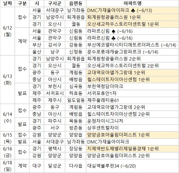 ◇ 청약 접수 단지