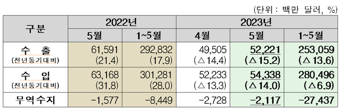 관세청은 15일 이러한 내용의 5월 월간 수출입 현황 확정치를 발표했다.