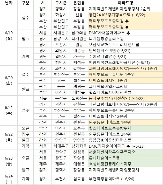 16일 부동산R114에 따르면 2023년 6월 셋째 주에는 전국 8개 단지(사전청약 포함) 총 3413가구(일반분양 1299가구)가 분양을 시작한다.