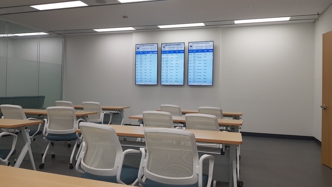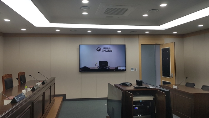 벽면 스크린은 소액사건 납세자가 서울 종로구 이마빌딩에 마련돼 있는 사무실에서 화상으로 심판에 참여할 때 사용한다.