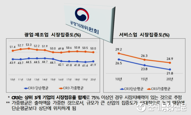 공정위는 25일 이런 내용을 담은 '2020년 기준 시장구조조사 결과'를 발표했다. 이 조사는 통계청의 경제총조사를 토대로 전(全) 산업의 시장 집중도를 분석한 것으로, 한국개발연구원(KDI)이 연구 용역을 맡았다.