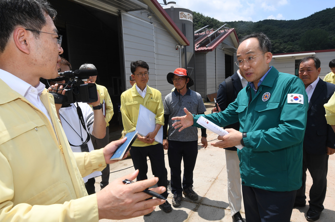 추경호 부총리 겸 기획재정부 장관은 19일 특별재난지역으로 선포된 충남 공주 양계농가와 청양 과수농가 등 호우 피해 지역을 방문한 뒤 기자들에게 이렇게 밝혔다.