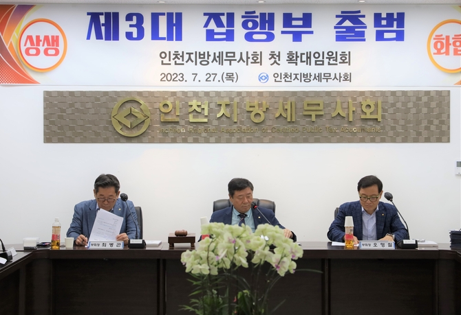 (조세금융신문=이지한 기자) 인천지방세무사회(회장 김명진)는 27일 첫 확대임원회의를 개최하고 향후 2년간 인천지방세무사회를 이끌어갈 이사와 정화위원장, 각지역세무사회장을 선임하고, 총무, 연수, 연구, 업무, 홍보, 국제 등 6명의 상임이사와 각 위원회 활동을 주관할 위원장을 임명함으로써 3대 집행부 인선을 완료했다.