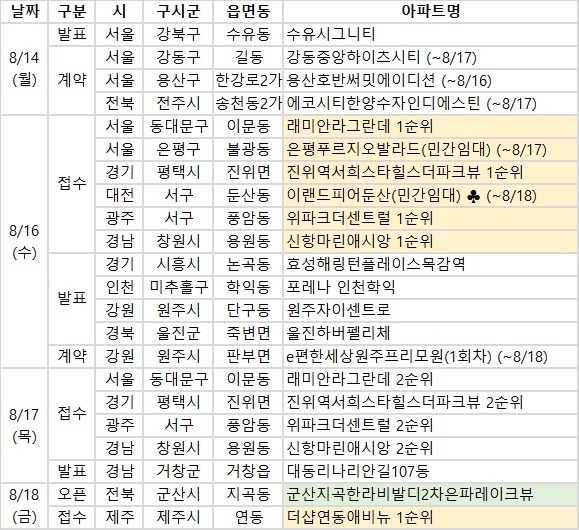 주요 분양 단지는 서울 동대문구 이문동 '래미안라그란데', 경기 평택시 진위면 '진위역서희스타힐스더파크뷰', 광주 서구 풍암동 '위파크더센트럴' 등이다.
