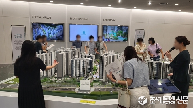 견본주택 관람은 많은 인파가 몰리지 않도록 입장을 제한했다. 입구에서 휴대폰을 이용해 QR코드를 찍고 성명과 전화번호를 입력하면 입장 순서를 알려줘 무턱대고 기다릴 시간을 줄여줬다.