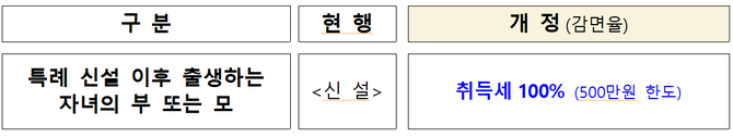 (조세금융신문=고승주 기자) 정부가 자녀 출산 가구가 실거주 목적으로 취득한 주택에 대해 최대 500만원 내에서 취득세를 전액감면한다.
