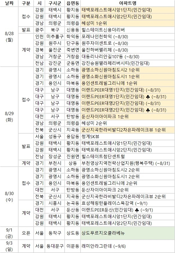 25일 부동산R114에 따르면 2023년 8월 마지막 주에는 전국 7개 단지에서 총 4496가구(일반분양 1969가구)가 분양을 시작한다.