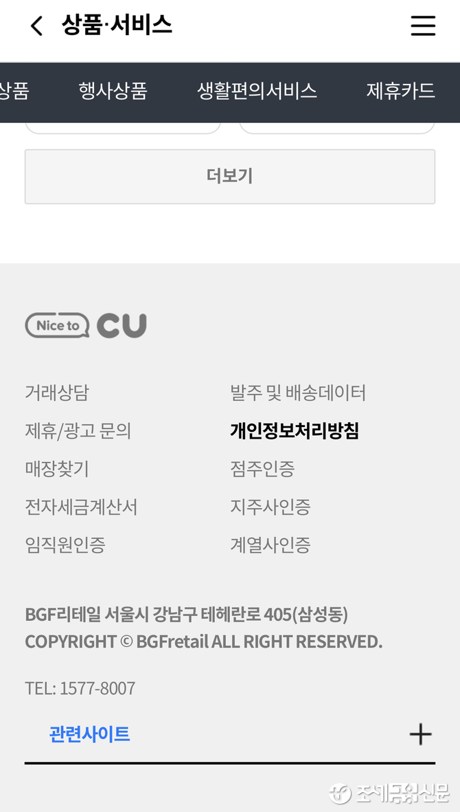 CU 본사는 소비자 피해 구제에도 소극적이라는 지적이다. A씨는 “주말에 CU편의점에서 겪은 소비자 피해를 CU 본사에 제보하려고 했지만, 온라인 CU 채널에는 소비자 상담 코너 자체가 보이지 않았다”면서 “소비자 상담전화로 보이는 고객센터 전화(1577-8007)는 평일 오전 9시부터 오후 9시까지 운영한다는 자동응답 메시지만 들었다”고 밝혔다.