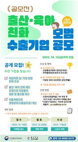 무역협회는 사내 기혼자 수, 아동 자녀 수, 수출 실적과 경영성과 등을 고려해 전문가 심사위원회 평가와 온라인 공개 투표 등을 거쳐 선정할 계획이다.