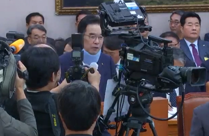 이 회장은 위원회 측에 이석을 요청했고, 농해수위는 건강 악화를 고려해 요청을 받아들였다.