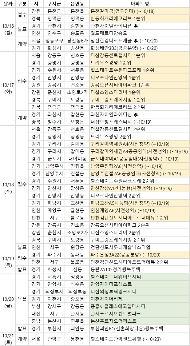 ◇ 청약 접수 단지
