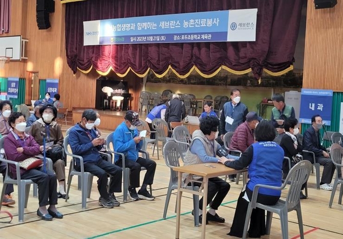 (조세금융신문=최주현 기자) NH농협생명 전남총국이 고흥군 포두초등학교 체육관에서 조합원과 노약자들을 대상으로 농촌의료지원 봉사활동을 진행했다.