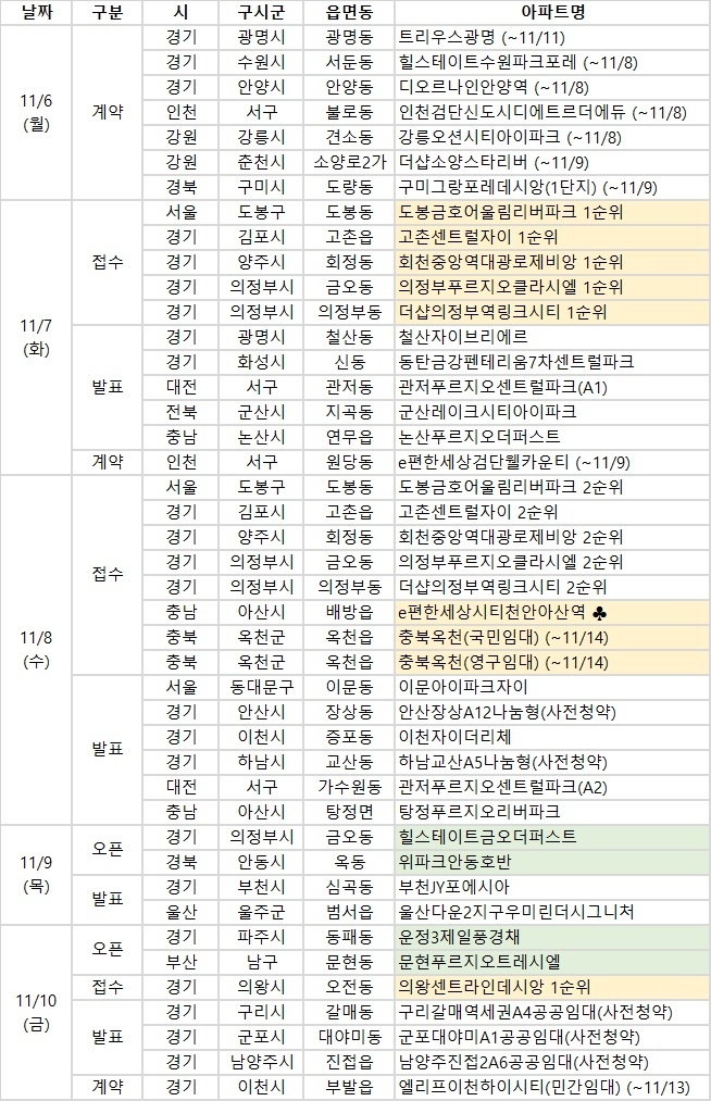 주요 분양 단지는 서울 도봉구 도봉동 '도봉금호어울림리버파크', 경기 김포시 고촌읍 '고촌센트럴자이', 경기 의정부시 의정부동 '더샵의정부역링크시티' 등이다.