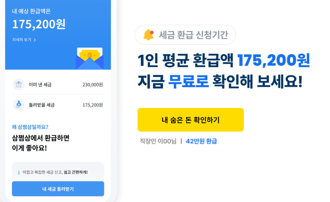 한편, 지난 6월 정부 개인정보보호위원회는 삼쩜삼이 회원으로부터 받은 주민번호 및 홈택스 로그인 정보를 제휴 세무사에게 전달해 홈택스 환급대행업무를 했고, 이 과정에서 개인의 민감정보를 위법수집했다는 이유로 8억6000여만원의 과태료 및 과징금, 시정명령을 내린 바 있다. 삼쩜삼은 이를 수용했다.