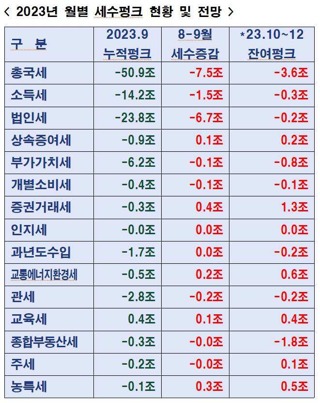 1년 중 세금 비수기는 5~6월, 8~9월, 11~12월인데, 10월 부가가치세 2기 예정 납부에서 한 몫벌고, 11~12월 비수기 동안 종합부동산세 외 특별한 세수감소 없이 선방한다면 가능할 수 있다.
