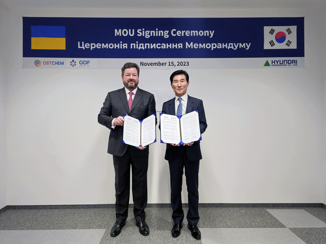 이어 15일 현대엔지니어링은 우크라이나 최대 민간 비료 생산 기업인 오스켐(OSTCHEM)사의 모회사인 그룹 DF(GDF)와 비료 및 화학 사업 추진 협력을 위한 MOU를 체결했다. 양사는 오스켐 소유의 비료·화학 플랜트 복구와 신규 플랜트 건설 사업에 대한 계획을 구체화해 나가기로 했다.