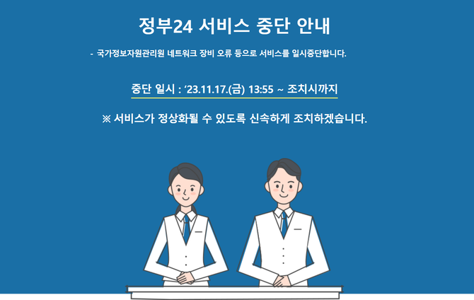 이날 오후 1시 55분께 발생한 정부24 접속장애는 공무원 전용 행정망 새올의 마비 때문인 것으로 나타났다.