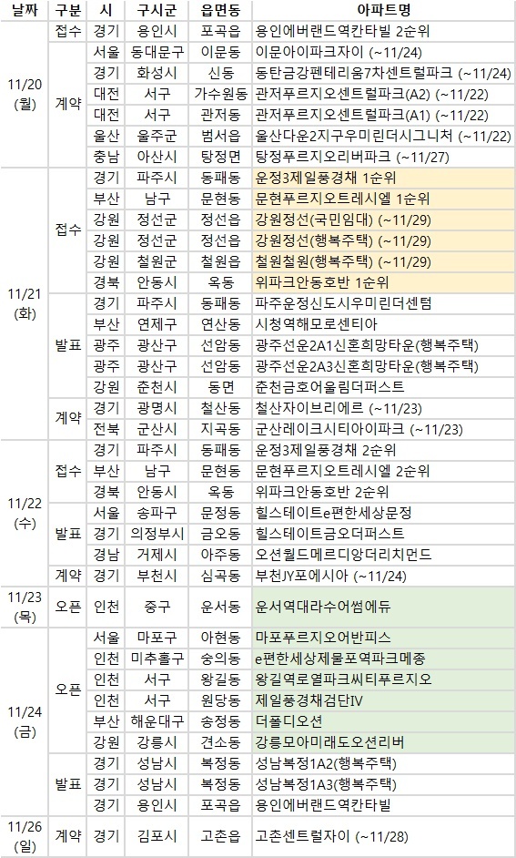 17일 부동산R114에 따르면 2023년 11월 넷째 주에는 전국 5개 단지 총 2161가구(일반분양 1502가구)가 분양을 시작한다.