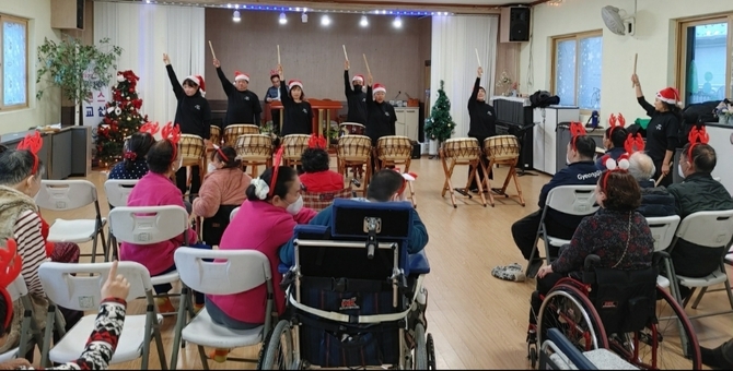 '난타 어울림' 회원들이 마련한 공연을 통해 춤과 노래를 은혜동산 원생들에게 선사했다.