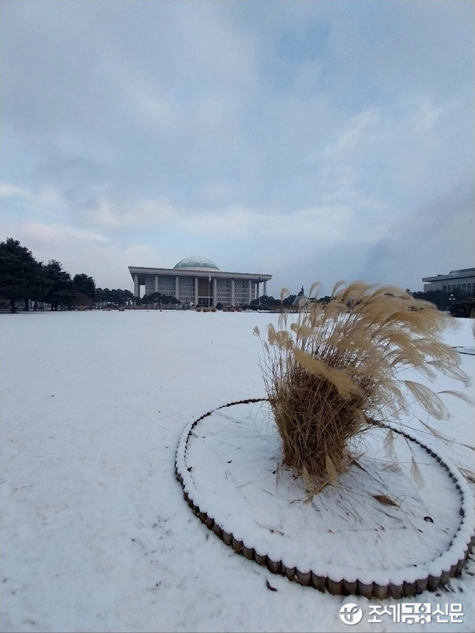 (조세금융신문=안종명 기자) 서울 국회의사당에 겨울눈이 내렸다. 꽁꽁 얼어붙은 예산안 만큼이나 얼어붙은 국회의사당. 하얗게 내리는 눈은 춥고, 팍팍한 서민들의 삶을 한결 가볍게 날려줄 한 줄기 희망과도 같았다.