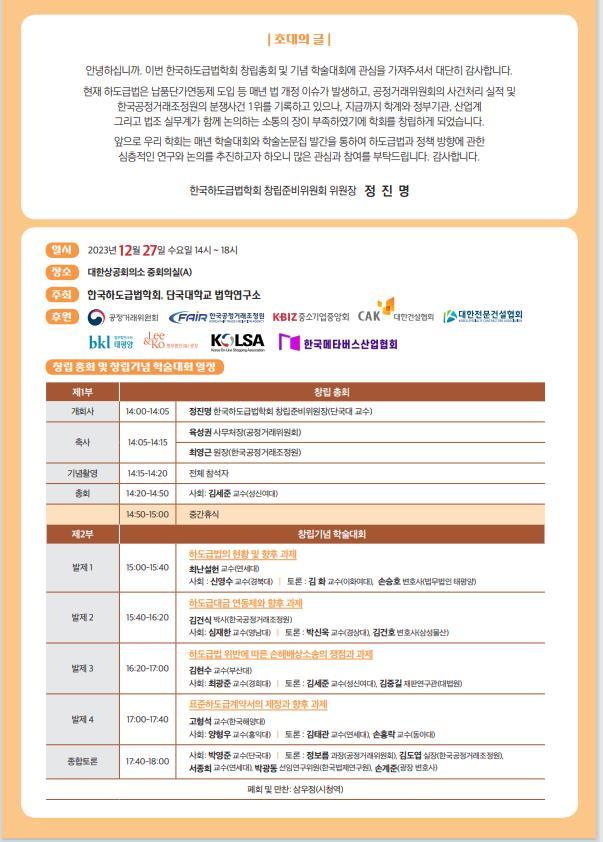 학회는 내년부터 연 2회 이상 정기적인 하도급 관련 학술 세미나를 열고 학술지 발간도 추진할 예정이다.