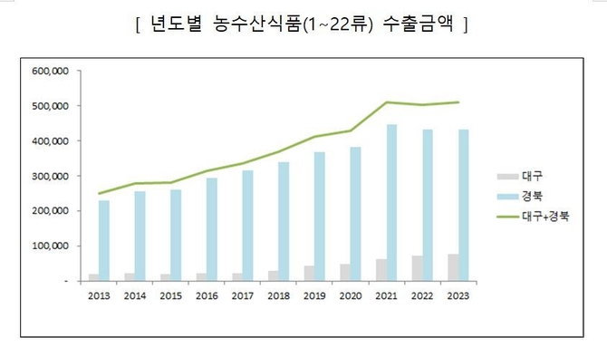 대구본부세관은 22일 지난해 대구경북 농수산식품 수출액은 5억 달러로 지난 10년간 2억 6000만 달러 이상 증가했다고 밝혔다.