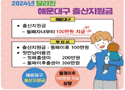 16일 구에 따르면 이달 중에 발송되는 지방세 체납고지서 뒷면에 '2024년 달라진 해운대구 출산지원금' 내용을 담아 해운대구 출산지원금과 첫만남이용권사업 내용을 알 수 있도록 했다.
