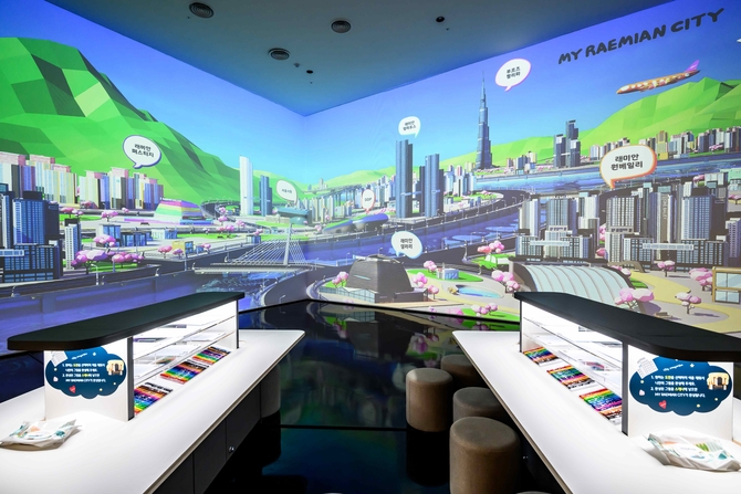 특히 1층 전시홀에서는 상설 체험 프로그램으로, 원베일리·첼리투스·부르즈칼리파 등 삼성물산의 랜드마크 건축물을 고객들이 직접 컬러링해보고, 영상에 구현할 수 있는 미디어아트 '마이 래미안 시티'를 운영하고 있다.