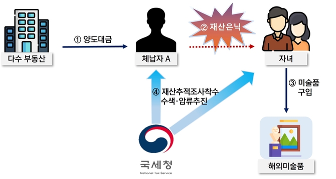 국세청은 대대적인 금융조회를 통해 체납자가 부동산을 판 돈이 어떻게 흘러갔는지, 그 돈 중 일부가 자녀의 명의로 구입한 해외 미술품에 갔는지 확인했다.