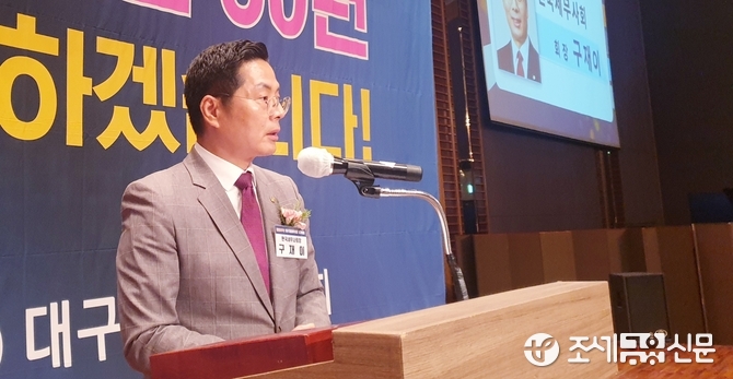 '내빈 축사'에 나선 구재이 한국세무사회장은 제33대 회장으로서 취임 1년간 변화와 혁신의 회무보고를 설파했다.