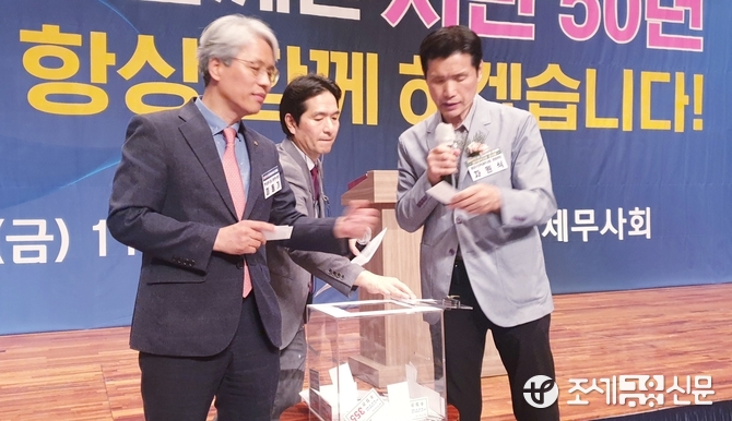 이날 사회를 맡은 김대경 총무이사(MC)의 행사시작을 알리는 안내멘트를 비롯해 ‘창립 50주년 경품추첨’ 헹사를 가졌다.