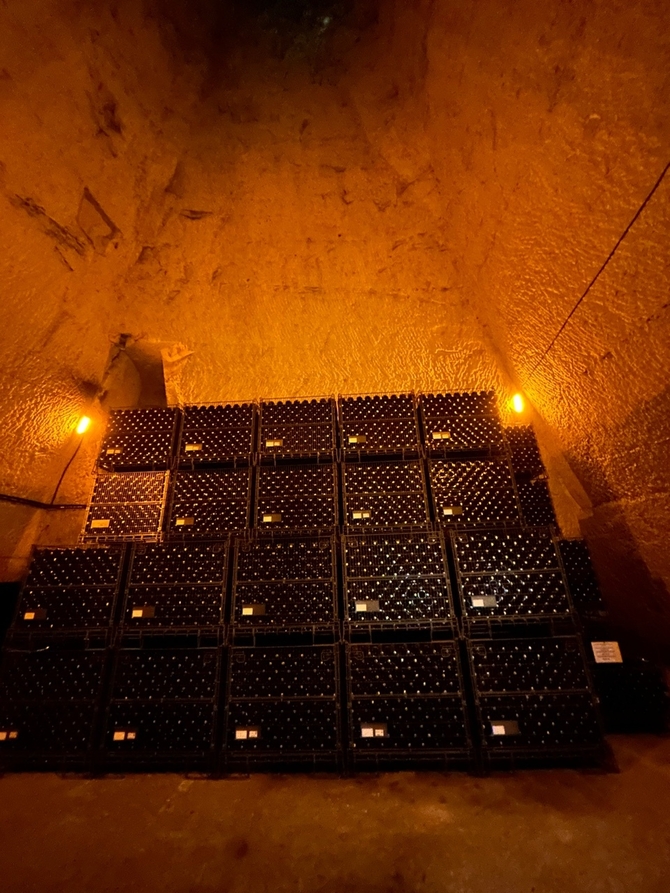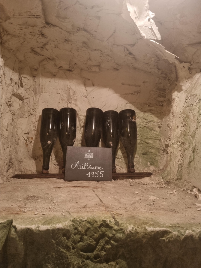 긴 계단을 따라 한참 동안 내려가면 탄성이 절로 나오는 큰 공간이 나오는데, 바로 2015년 유네스코에도 등재된 2000년 역사의 백악질 셀러 Les Crayères를 만나게 됩니다. 총 47개로 구성된 셀러 방에서 오랜 시간 천천히 샴페인 찰스 하이직이 숙성되고 있었습니다.