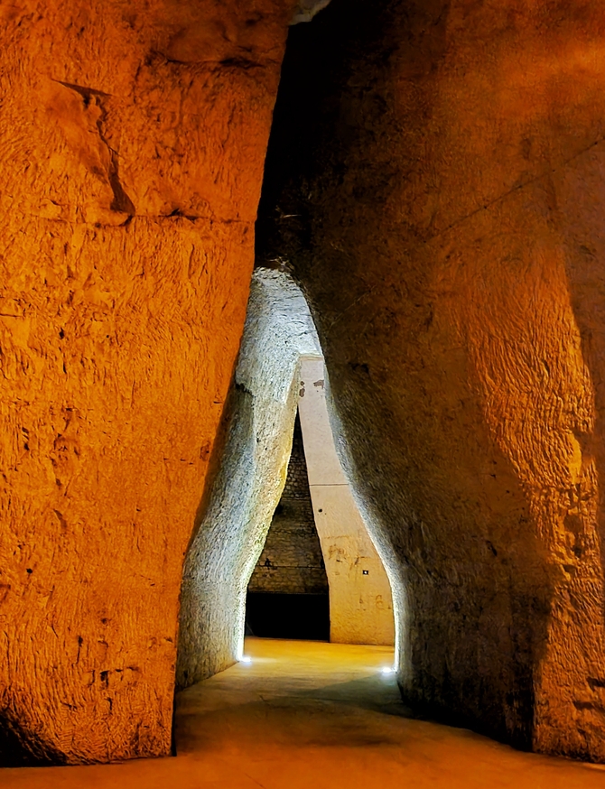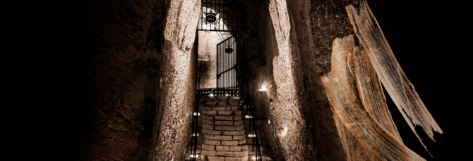 <8~9>2000년 역사의 Les Crayères 백악질 셀러 입구와 내부 모습 [사진=마현수]