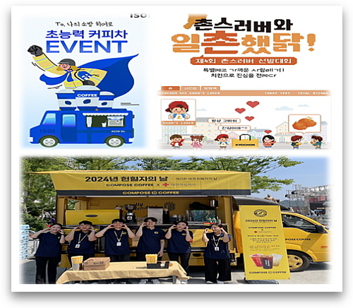 한편, 컴포즈커피는 고객과의 접점을 확대하는 동시에 응원과 격려가 필요한 곳이면 어디든 커피트럭을 보내 무료로 커피를 제공하는 ‘찾아가는 커피트럭 이벤트’를 연중 진행중이며, 더 많은 고객과의 소통을 위해 찾아가는 커피트럭 행사를 예년보다 확대해 진행할 예정이다.