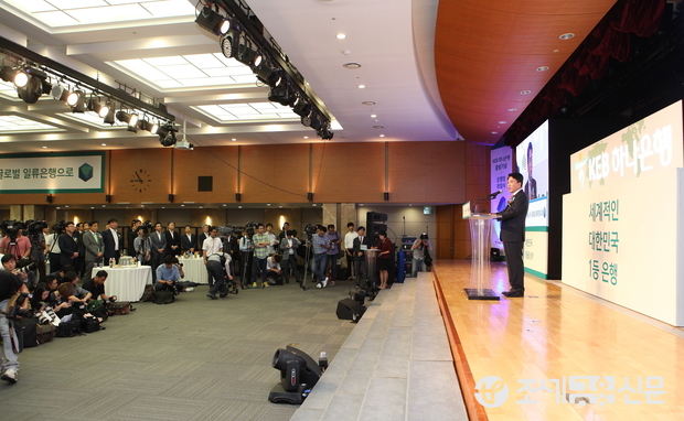 (조세금융신문=전한성 기자) 하나은행과 외환은행이 통합하여 출범하는 'KEB 하나은행 출범식 및 함영주 은행장 취임식'이 1일 오전 서울 중구 을지로 KEB 하나은행 본점에서 열린 가운데 함영주 은행장이 인사말을 하고 있다.