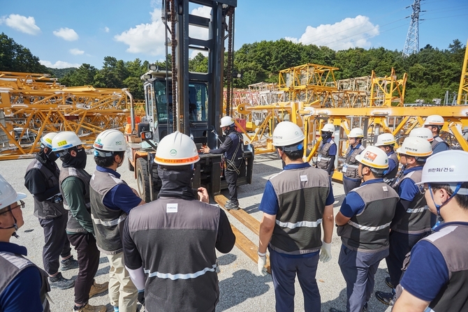 한화 건설부문은 앞서 올해 6월부터 각 현장별 건설기계 담당자들을 육성 중에 있다. 이 가운데 크레인, 리프트 등 대형 건설기계들은 중대재해 위험도가 높아 장비의 이해도는 물론 이를 운영하는 협력사와의 소통이 중요하다는게 한화 건설부문측 설명이다.