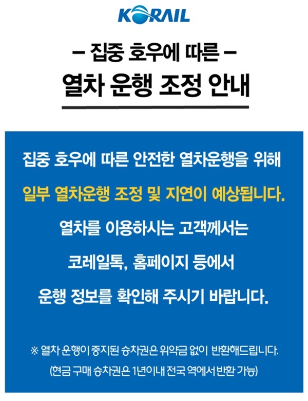 코레일 관계자는 "집중호우로 인한 피해를 막기 위해 최선을 다하고 있다"고 전했다.