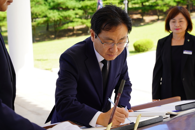 강태일 세관장은 방명록에 "국가와 민족에 헌신하신 순국선열의 숭고한 뜻을 받들어 관세국경을 수호하고 국민을 위한 관세행정을 펼치겠습니다"라고 다짐을 적었다.