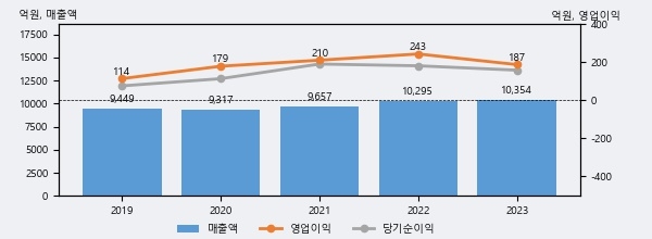 최근 3년간의 실적을 살펴보면 안정적 성장세를 보이고 있다. 최근 3년간 매출로 볼 때 매년 증가하고 있다. 다만 최근에 그 증가폭이 다소 감소하고 있다.