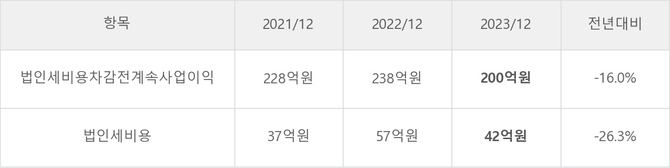 KTcs의 지난 3년 동안 법인세 납부액 추이를 보면 2022년에는 증가했으나, 작년에는 42억원으로 감소했다.
