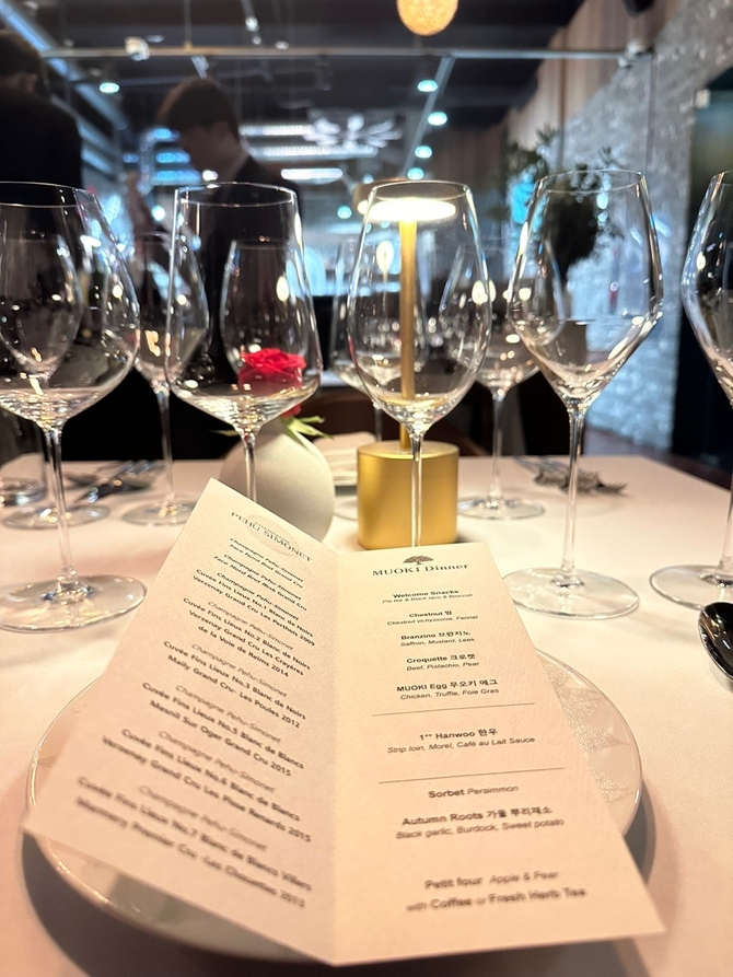 개인적으로 이날 가장 인상 깊었던 샴페인이었습니다. 처음부터 마지막 한잔까지 실크 스카프를 두르듯 우아한 풍미가 인상 깊었으며, 입안에서 잘 익은 아카시아 꿀, 버터 스카치, 은은한 커피향이 점점 시간이 지나면서 복합적인 풍미로 발전했습니다. 초반에는 잘토 유니버셜 잔에 기포를 즐겼다면, 마지막 1~2잔 정도는 넓은 잔에서 ‘기포 이면의 숨은 매력’을 느껴 보시길 추천드립니다.