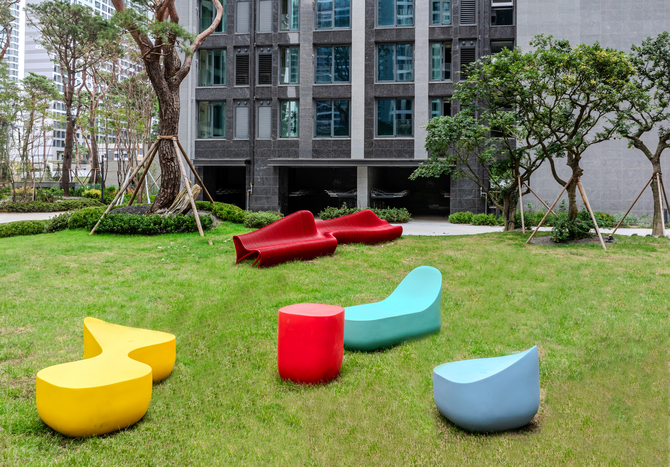 현대건설은 지난 2023년 개발한 펀디자인 벤치 3종과 조명 1종으로 구성된 총 15개 유형의 펀디자인 시설물을 공동주택에 적용할 계획이다. 우선 올해 준공 예정인 ‘올림픽파크포레온’을 시작으로 ‘힐스테이트 관악센트씨엘’, ‘디에이치 대치 에델루이’ 등 서울시 주요 아파트 단지에 오는 2029년까지 설치할 예정이다.