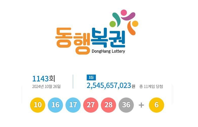 (조세금융신문=박청하 기자) 제1143회 로또복권 추첨에서 '10, 16, 17, 27, 28, 36'이 1등 당첨번호로 뽑혔다. 2등 보너스 번호는 '6'이다.