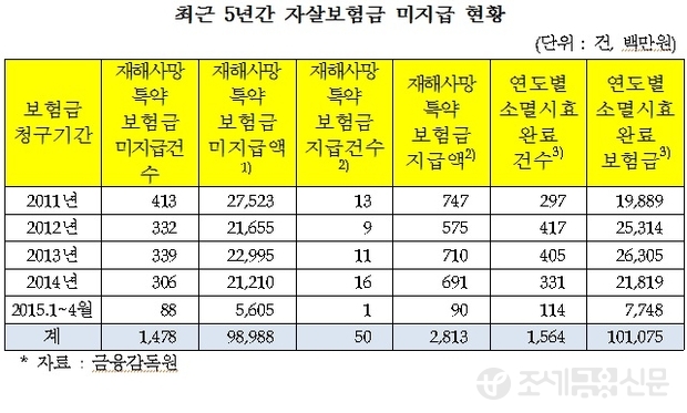 (조세금융신문=김사선 기자) 소멸시효가 완료된 자살보험금의 규모가 무려 1천억원을 넘는 것으로 나타났다.