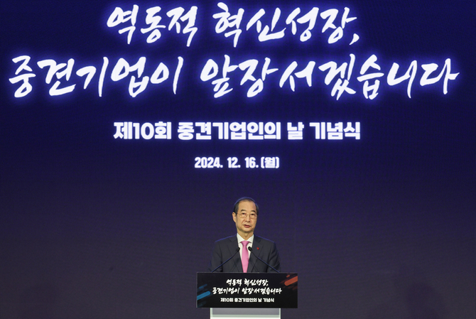 한덕수 대통령 권한대행 국무총리는 16일 서울 중구 더플라자호텔에서 열린 '중견기업인의 날' 기념식에 참석해 "여러 가지 난제들을 그런 협의체에 올려서 논의·소통하고 국민들이 안심할 수 있도록 하겠다"며 이같이 밝혔다.