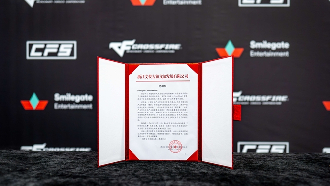 (조세금융신문=이정욱 기자) 스마일게이트가 글로벌 No.1 온라인 FPS '크로스파이어'의 e스포츠 대회인 'CFS 2024 그랜드 파이널'을 개최해 한·중 양국간의 문화 교류와 우호 증진에 기여한 공로를 인정받아 중국 '저장성 문화관광발전 유한공사'로부터 감사장을 받았다고 26일 밝혔다.