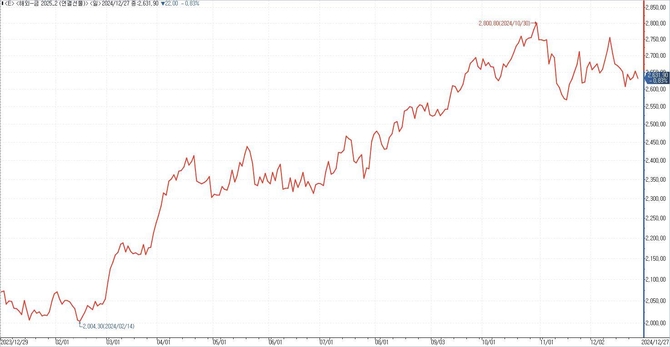 국제 금값은 올해 랠리를 지속하며 10월 말 온스당 2천800달러선까지 올랐다가 도널드 트럼프 전 대통령의 미 대선 승리 이후 조정을 받은 바 있다.