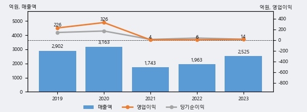 우원개발의 2023년 매출액은 전년대비 28.6% 늘어난 2525억원이고, 영업이익 또한 전년대비 134.5% 늘어난 14억원을 기록했다. 이 회사의 매출액 증감률과 영업이익 증감률은 각각 코스닥 상위 14%, 상위 11%에 해당된다.